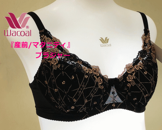 残りわずか/ワコール WACOAL 産前ブラジャー ブラック×ピンク刺繍/**D65**今ならマタニティショーツプレゼント