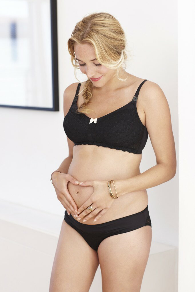 Amoraliaのおしゃれで機能的なマタニティ・授乳インナー -Amoralia カップケーキマタニティブリーフ ブラック- ■ブラックのレースとサテン生地がゴージャスなスタイリッシュなマタニティショーツ。